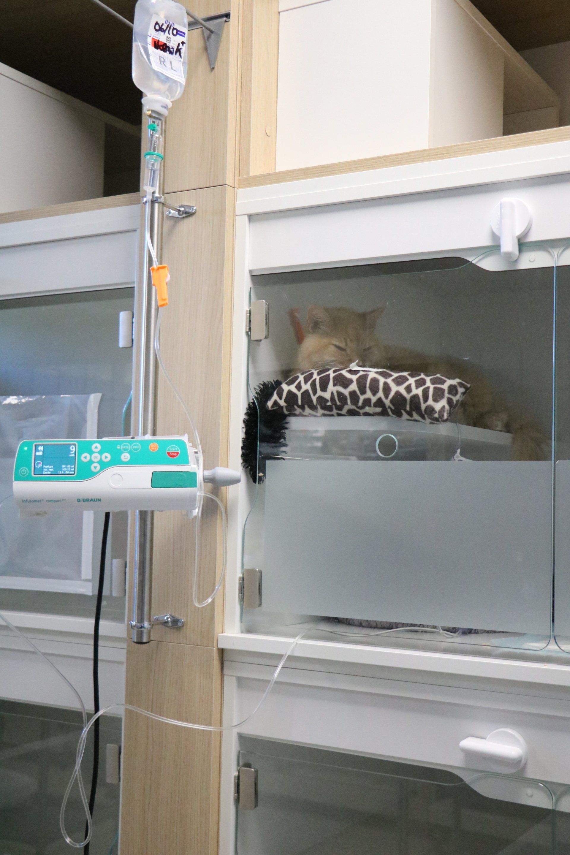 Avec 20 modules de la gammes gold en séjour + de 24h, équipés de cachettes et tablettes, les chats hospitalisés chez ONIRIS vont trouver le plus grand des confort ! Les cachettes permettent à ces animaux sensibles de s'isoler, répondant ainsi à leurs instincts, ils se sentiront rapidement en sécurité et la configuration n'empêche pas une manipulation aisée pour les soigneurs.
